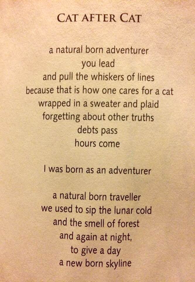 Q. “Cat after cat” – working with a poem as an inspiration.