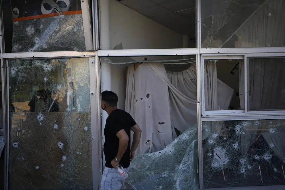 Videos on social media showed plumes of black smoke rising from the hills of northern Israel and streaks across the sky left by the Iron Dome system. Divergent photos show at least one building where debris fell into the streets of the northern Israeli city of Shlomi, smashing windows. Lebanese state news agency reported that Israeli tanks along the border had fired artillery shells at two towns in southern Lebanon near the Palestinian refugee camp of Rashidie in retaliation – a claim denied by the Israeli military.
