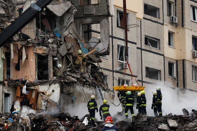 DNIPRO, UKRAINE (Reuters) Jan,15– The death toll from a Russian missile attack on an apartment building in the Ukrainian city of Dnipro rose to 21 on Sunday as rescuers dug through a huge pile of rubble looking for survivors.